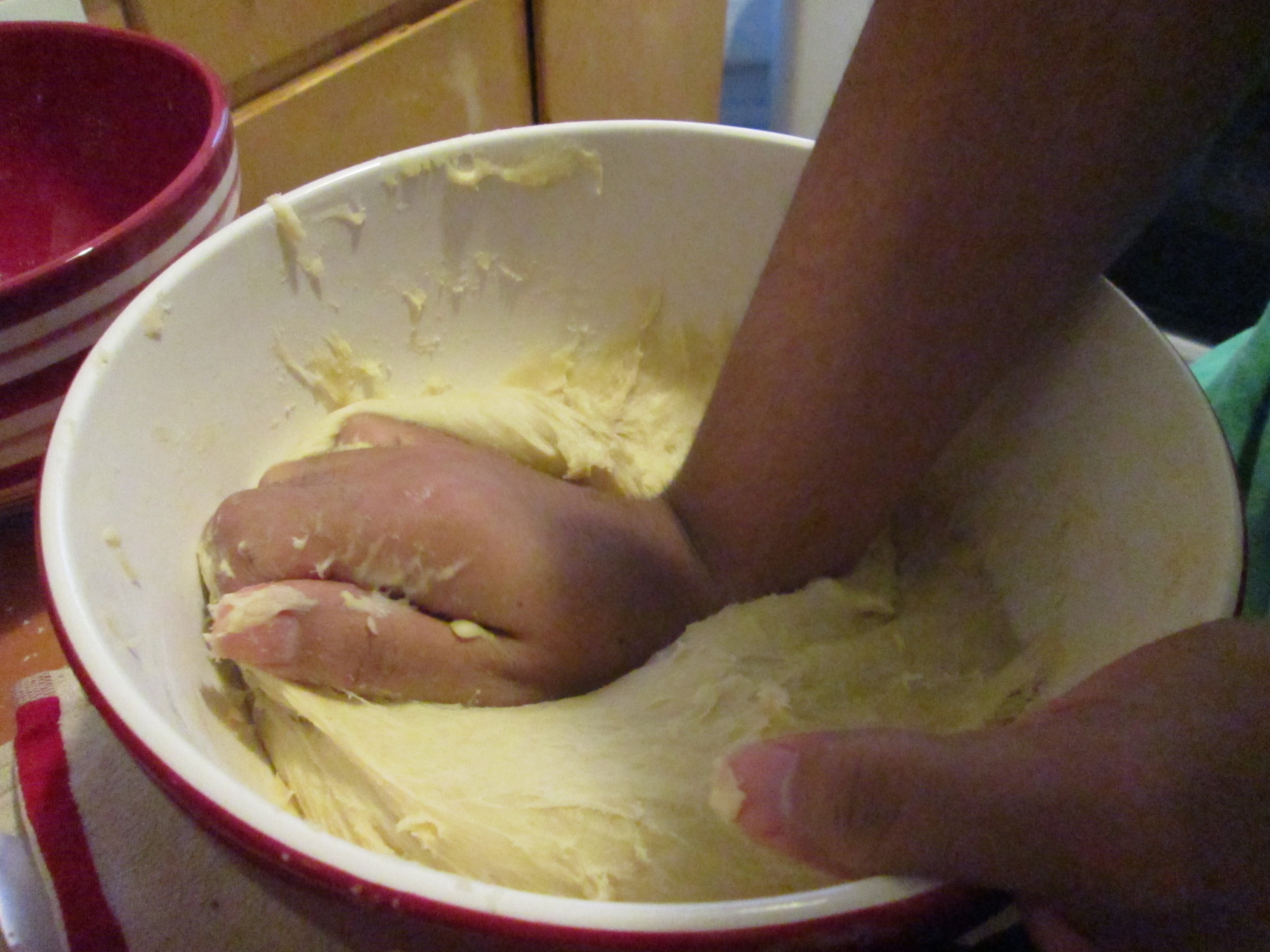 The recipe, from the lovely Lynna at Hearts in My Oven, is a simple but lengthy project. These rolls require two rises, one after making the dough, and the other after the rolls have been formed. Each rise is for two hours. I know, such a long wait! Trust me, it is definitely worth it.
