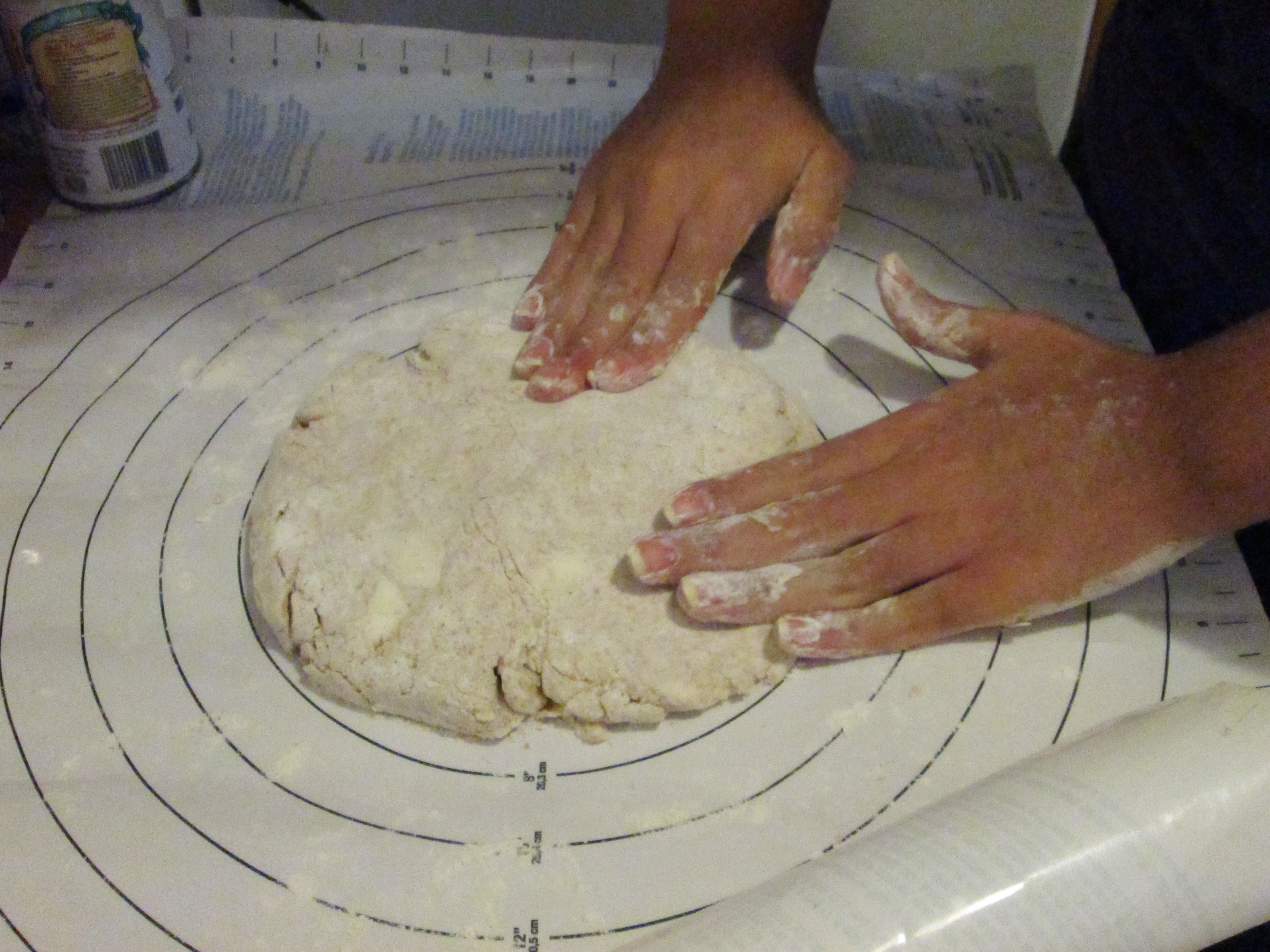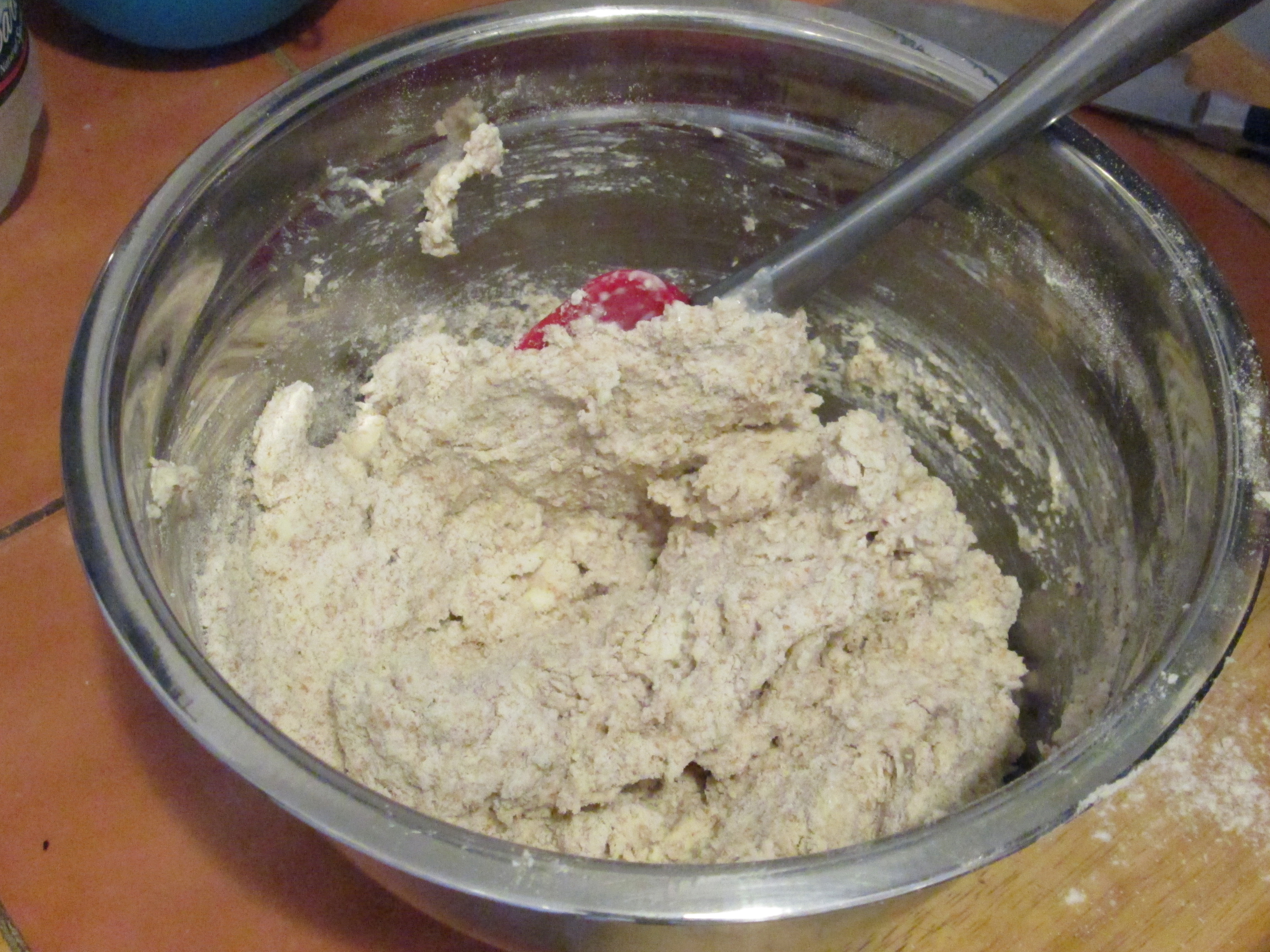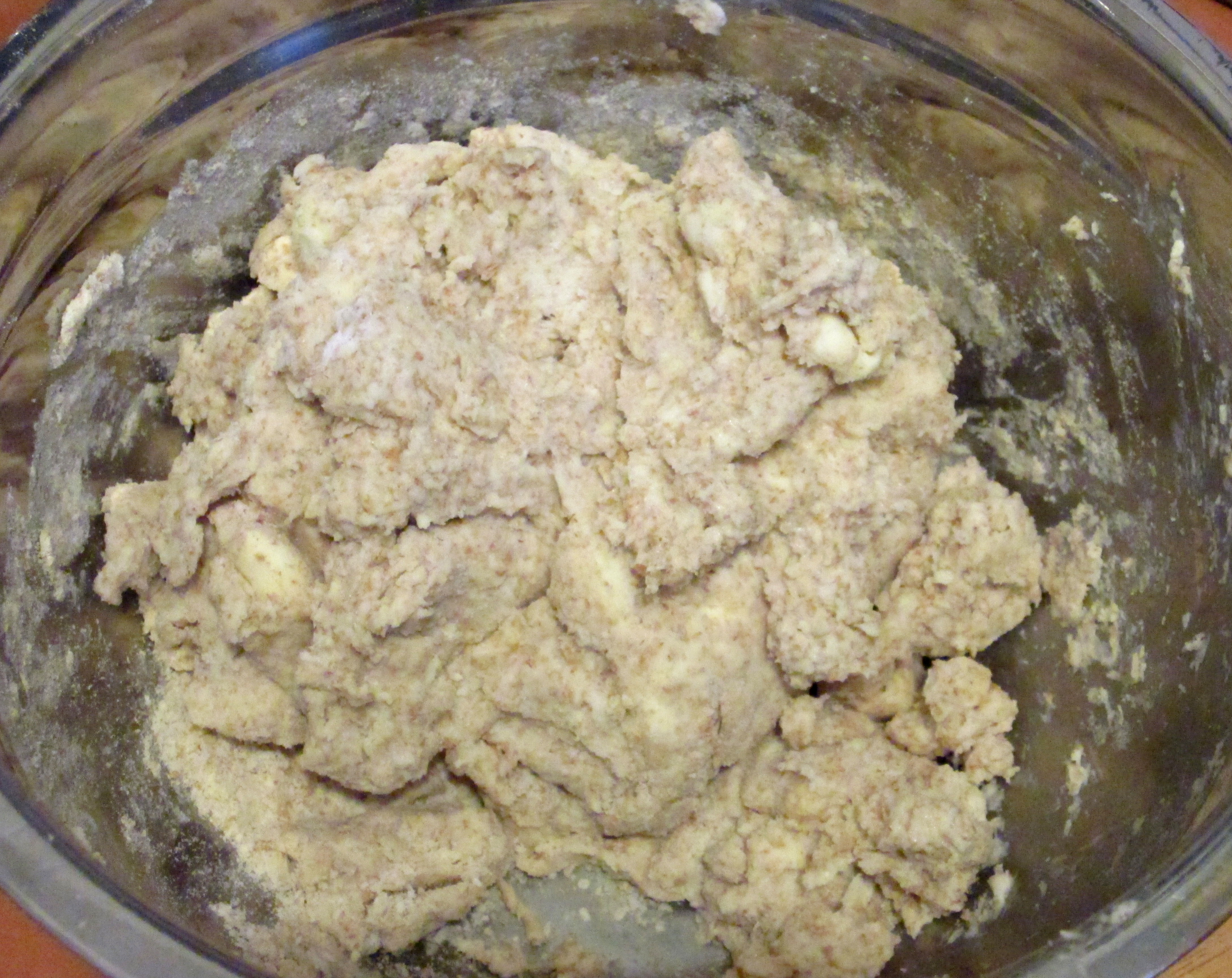 - Add buttermilk and stir until large, craggy clumps form. Reach hands into bowl and knead mixture briefly until it just holds together.