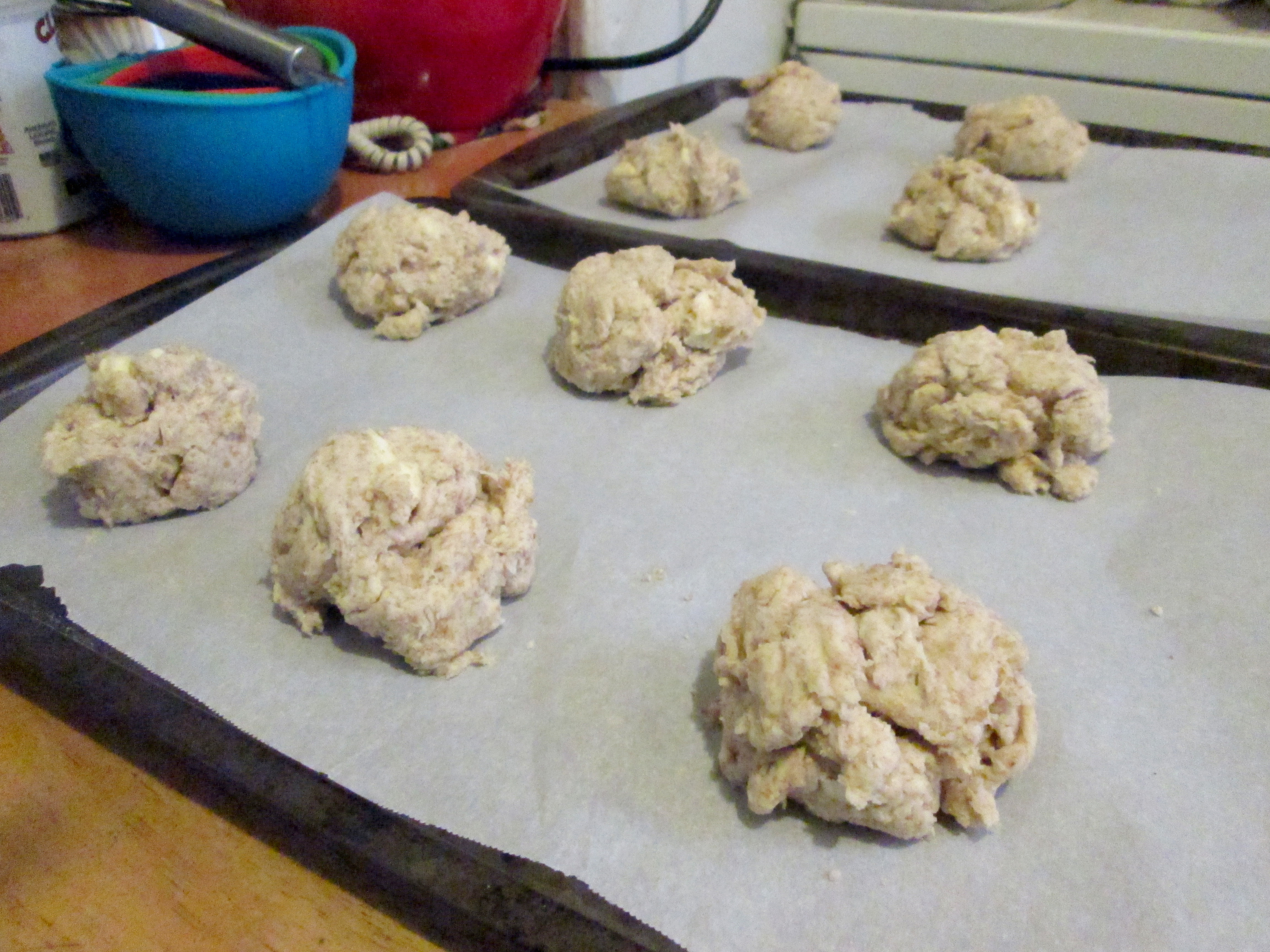 I made these twice within a week and decided to try them both ways. I didn’t make many adjustments to the recipe; aside from switching half of the flour for whole wheat. The dough comes together fairly quickly and is easy to work with. For the drop biscuits, I used my 1/4 cup measure to spoon out them out onto the baking sheets; just to make sure I got the right amount per biscuit. For the cut outs, I patted the dough onto a floured surface and cut out the rings using a biscuit cutter (that you may have seen in last week’s post). The important tip Deb outlined in the cut outs is DO NOT TWIST THE BISCUIT CUTTER WHEN CUTTING OUT THE BISCUIT. She says this limits the biscuits from rising into fluffy layers and I believe she’s right. I mean, I didn’t want to try twisting it to see what would happen but it’s science! So, she’s got a point.
